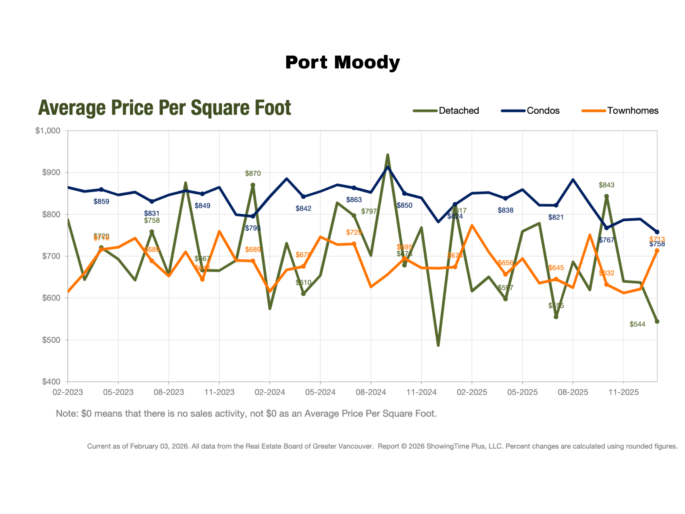 Port Moody – Avg Price Per SQFT